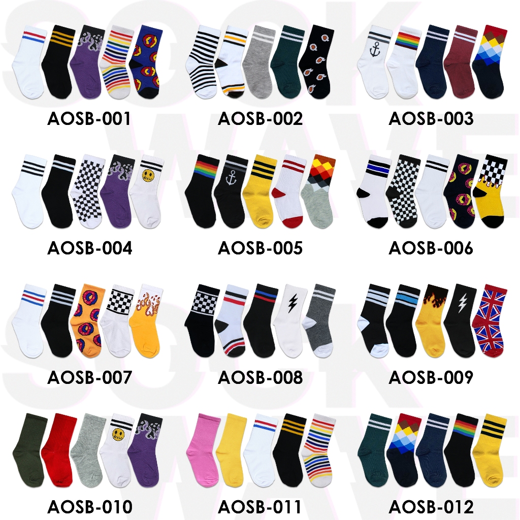 PAKET ISI 5 PASANG Kaos Kaki Anak Oldschool Laki - laki Perempuan Usia 1 - 6 Tahun