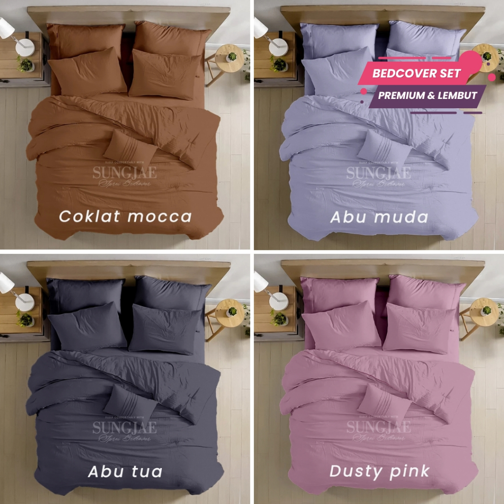 SUNGJAE SPREI BED COVER Bed Cover Set Polos/Bedcover+Sprei Motif Polos Satu Warna