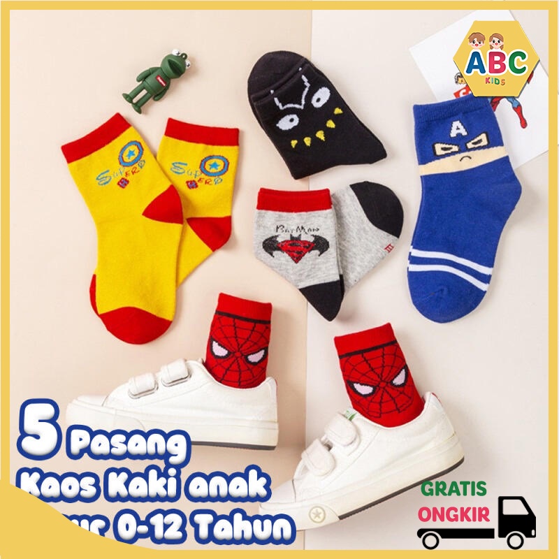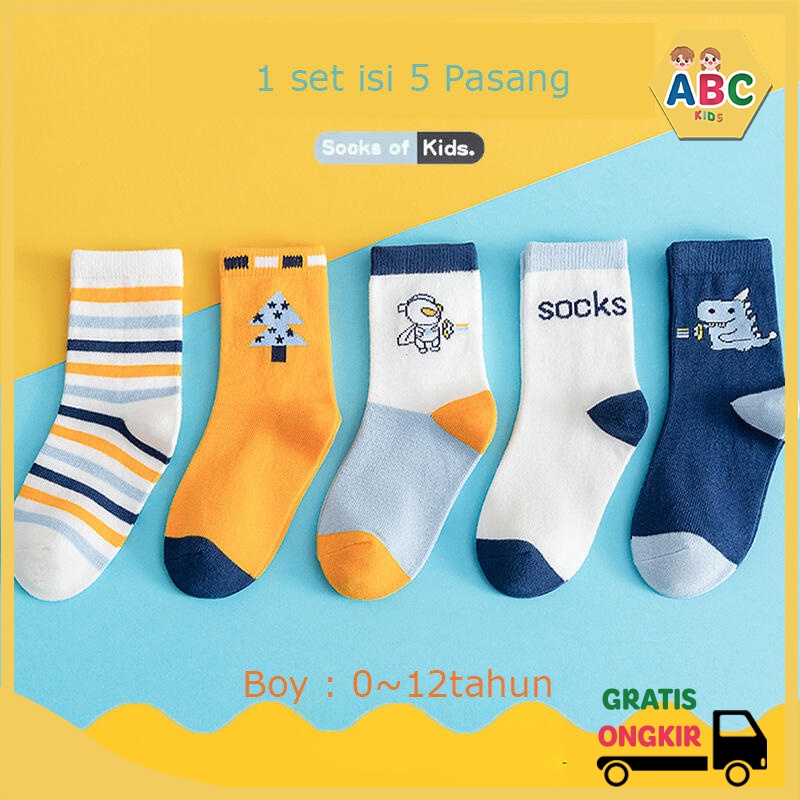 ABC KIDS ISI 5 PASANG Kaos Kaki Anak Motif Lucu Bayi Laki-laki usia 1 2 3 4 5 6 7 8 9 10 11 12 Thn
