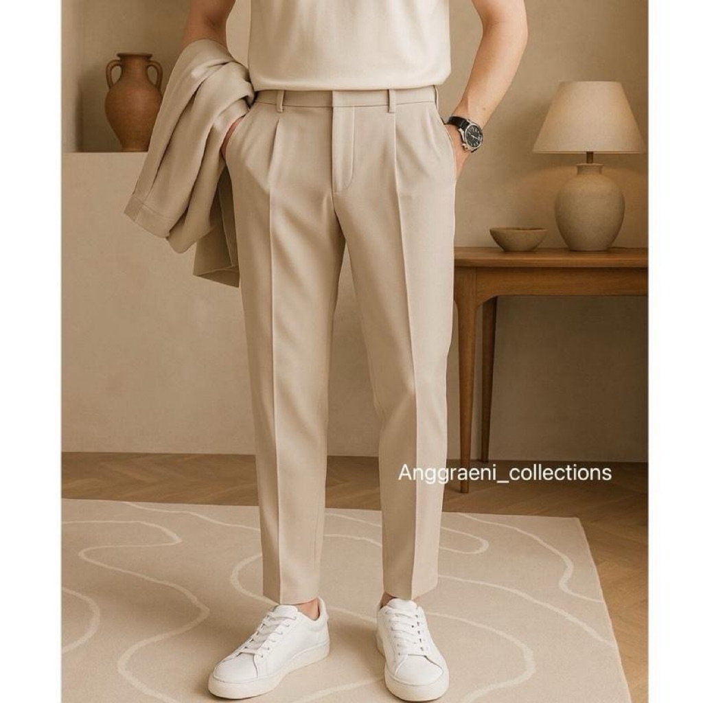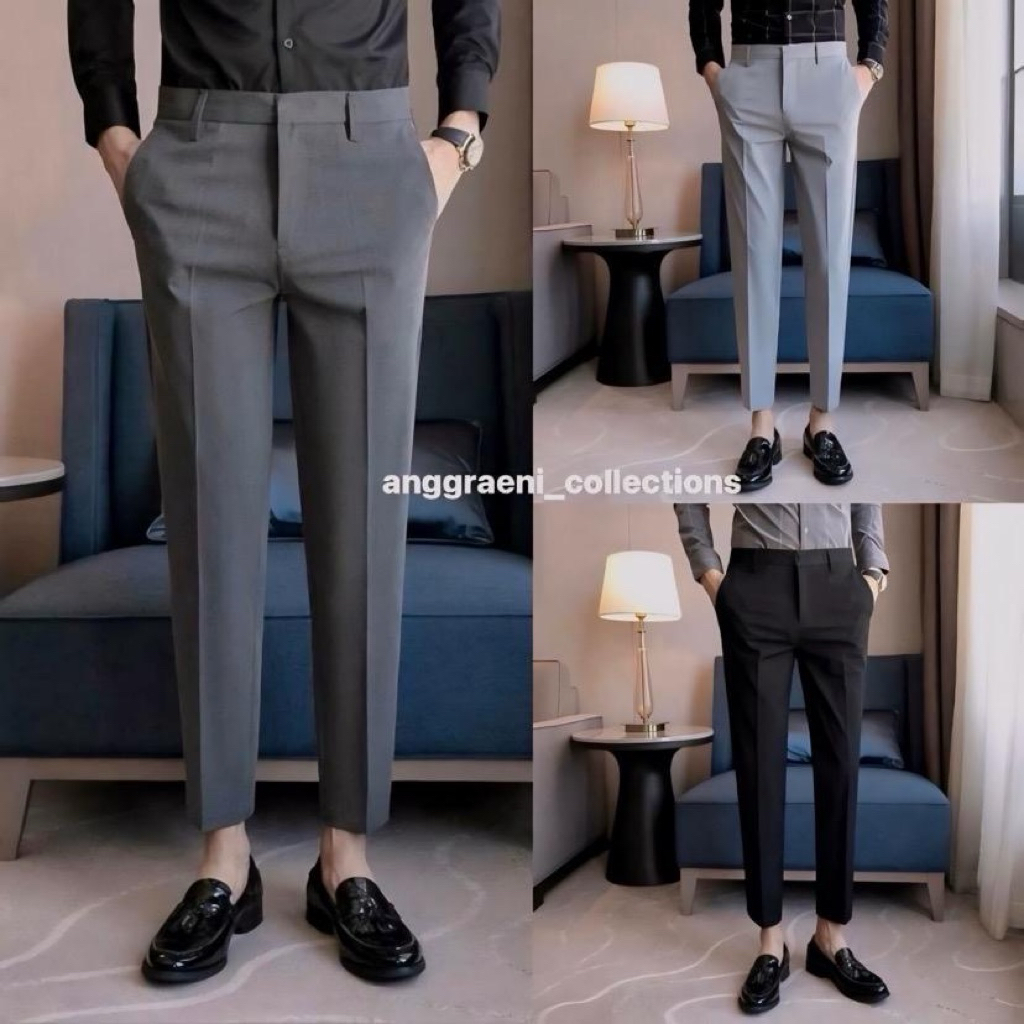 Celana Ankle Pants Kantor Formal Pria Slimfit Celana Kerja Bahan Woll Anti Kusut
