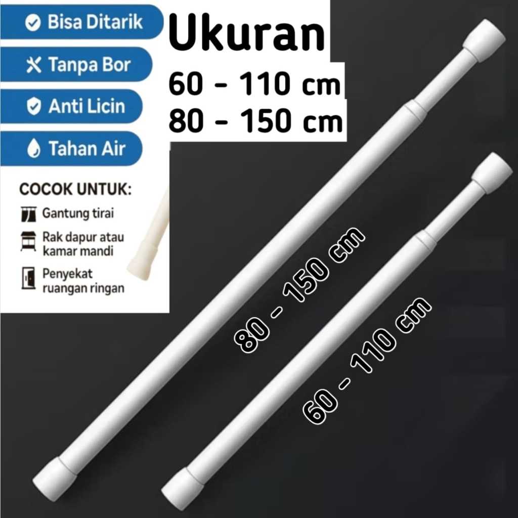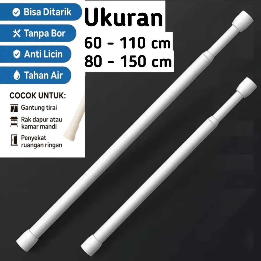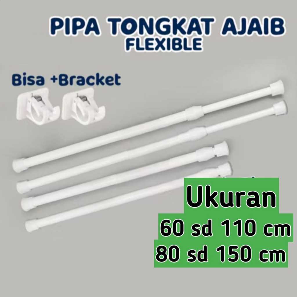 Tongkat Tiang Pipa Flexible Ajaib Serbaguna Aluminium Putih | Tiang Gorden