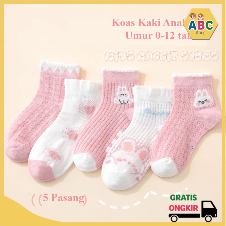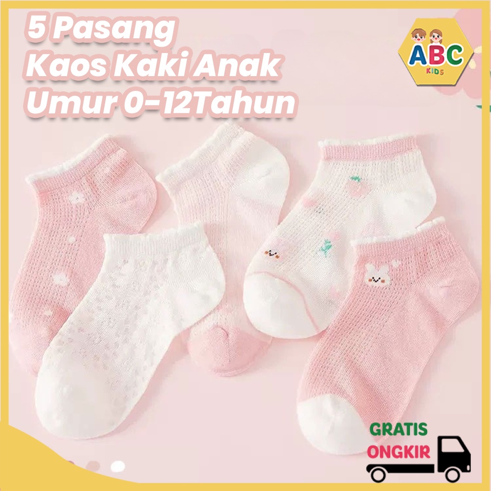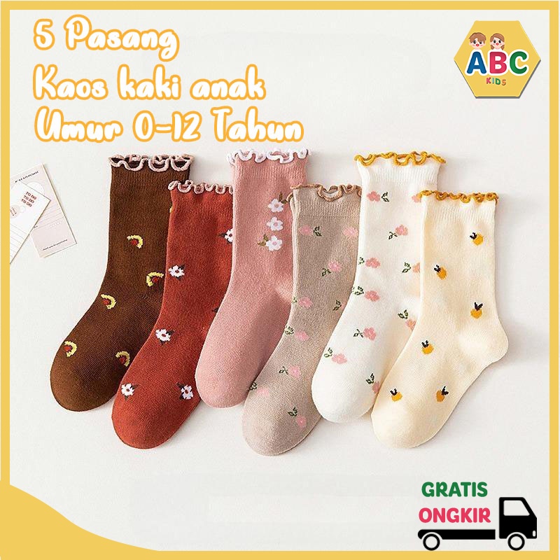 ABC KIDS Kaos Kaki Anak 5 pasang Anak Usia 1 2 3 4 5 6 7 8 9 10 11 12 Tahun Kaos Kaki Anak Sekolah