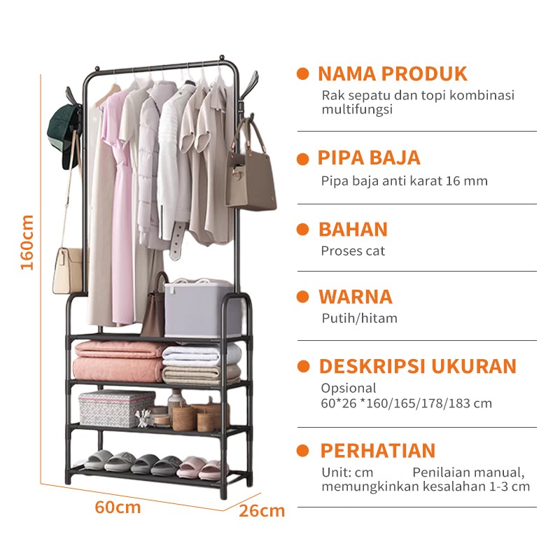 Rak Gantung Baju Stand Hanger Gantung Clothes Hanging Rack Rak Sepatu 3 Susun Lemari Pakaian Sederhana Rak Penyimpanan