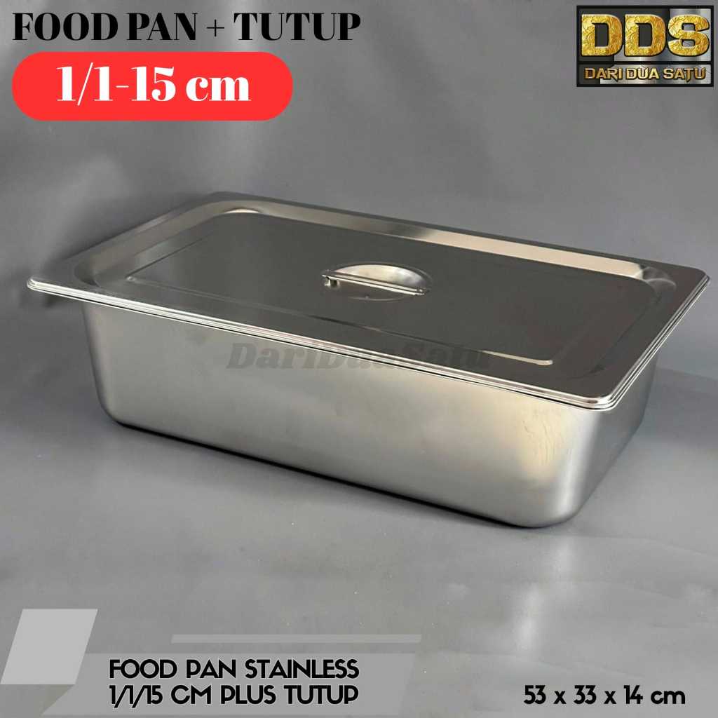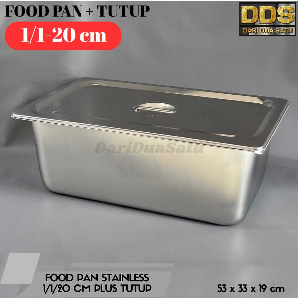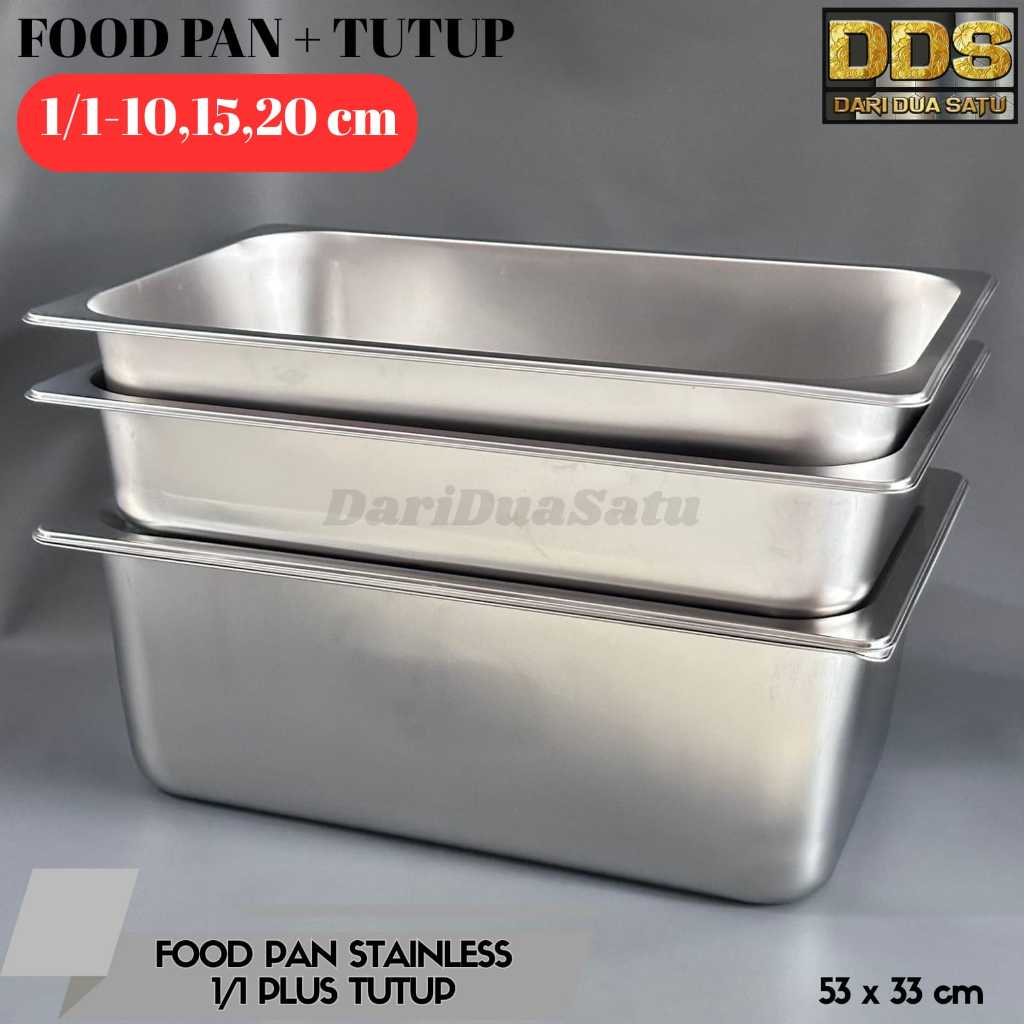 Food Pan Stainless Plus Tutup 1/1 Tinggi 10 cm,15 cm, 20cm / Nampan Stainless Plus Tutup 53 x 33 cm