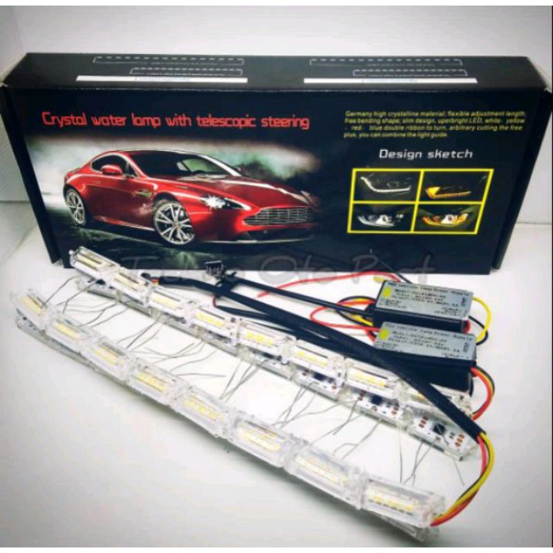 Lampu LED DRL Alis Crystal 60 Cm 12 Volt Welcome Light Sen Running Putih-kuning