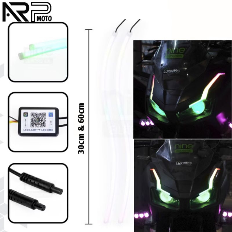 SEPASANG LAMPU ALIS RGB APP BLUETOOTH PREMIUM LUXIMOS DB1 30&60CM PLUS SEIN RUNNING WELCOME FLEXIBEL MOBIL MOTOR TIDAK B