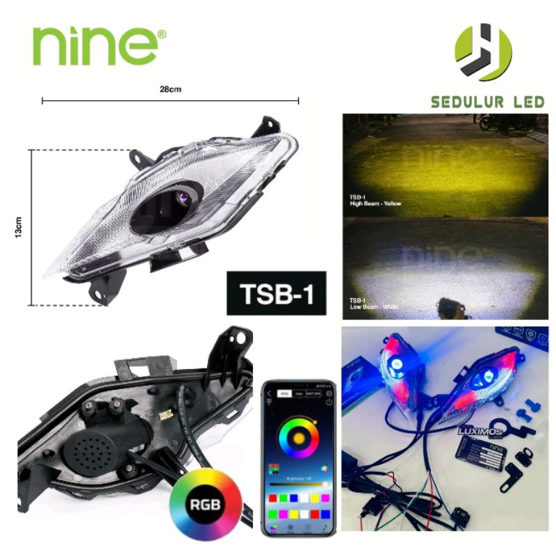 LAMPU SEIN HEADLAMP PROJECTOR LENS DRL RGB ALIS BONUS SAKLAR BEAT DELUXE CBS LUXIMOS LED TSB1 dan DHB RGB