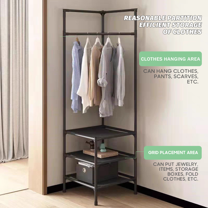Rak Hanger Sudut Serbaguna Simpan Pakaian Rak Gantung Pakaian Minimalis Rak Mantel Sudut Kokoh Rak Berdiri Di Lantai Kes