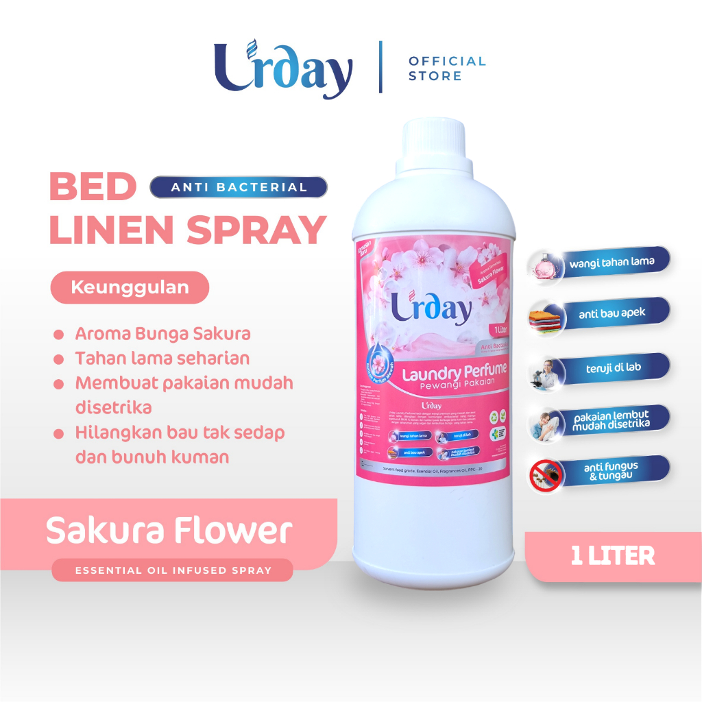 Refill Parfum Laundry - Antibacterial Room & Linen Spray 1 Liter U'rday - Parfum Laundry Tahan Lama