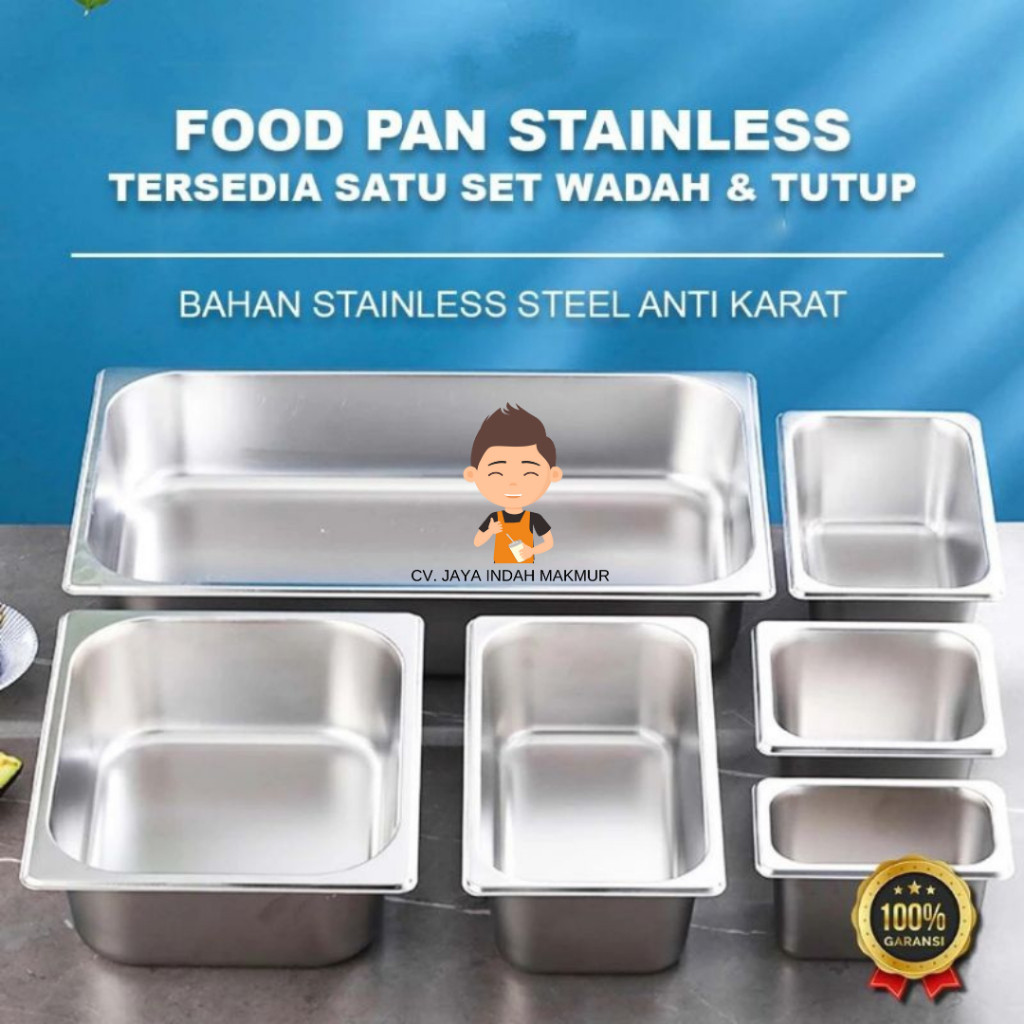 DDI Food Pan Stainless Steel Wadah Makanan Prasmanan dengan Tutup FoodPan 1/9 x 6.5 cm 1/9 x 10 cm 1/6 x 15 cm 1/3 x 10 cm