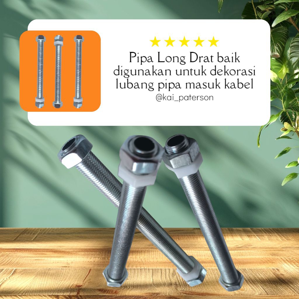 Pipa Long Drat M1.0 FREE Mur M10x1 / Tiang Lampu Hias