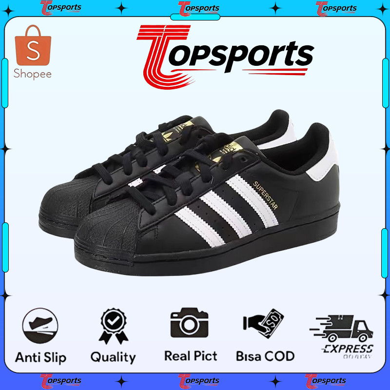 Adidas Lifestyle Superstar J Sneakers Unisex Hitam Putih - Desain Iconik Shell Toe, Kualitas Premium, Bonus Kotak Merek
