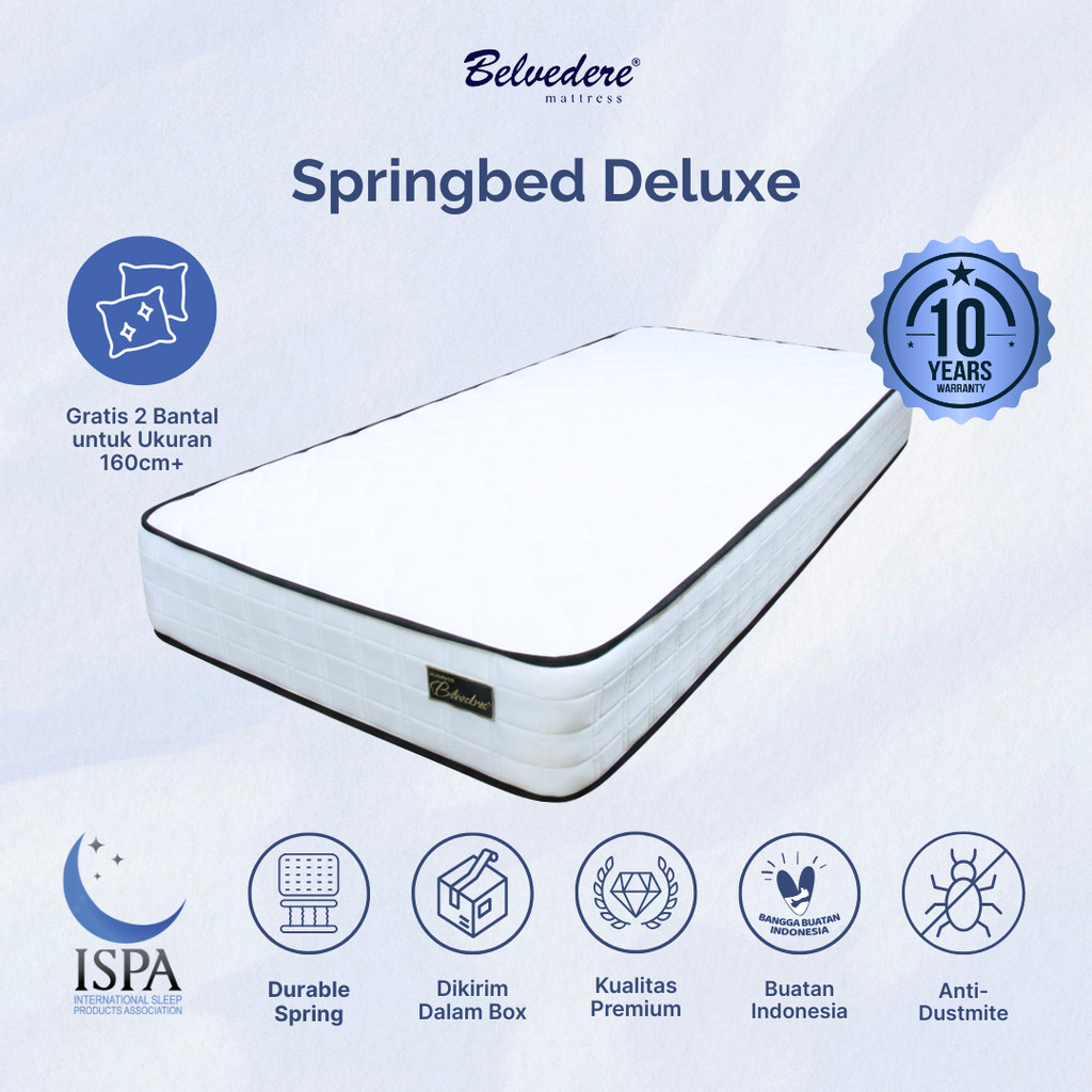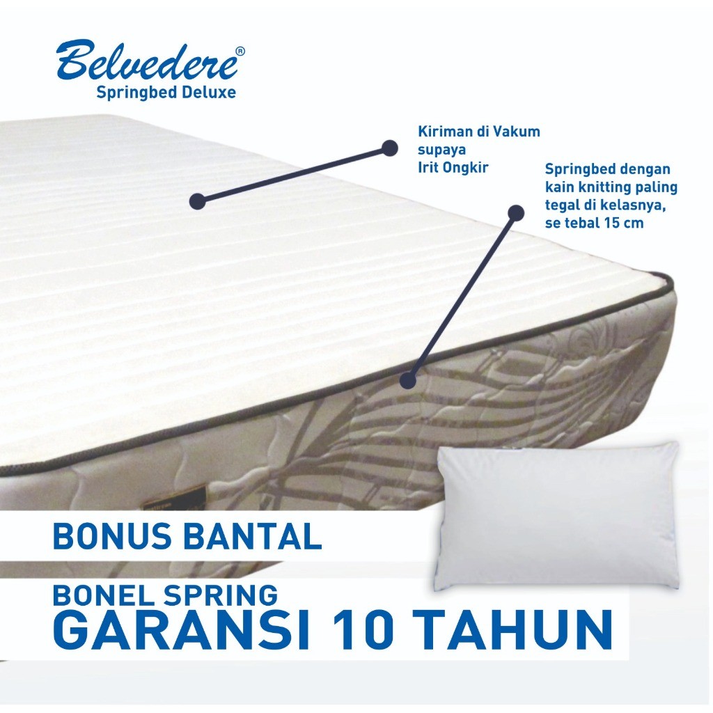 Belvedere Springbed Deluxe dalam Box Free Bantal / Bonel Spring Support / Garansi Per 10 tahun