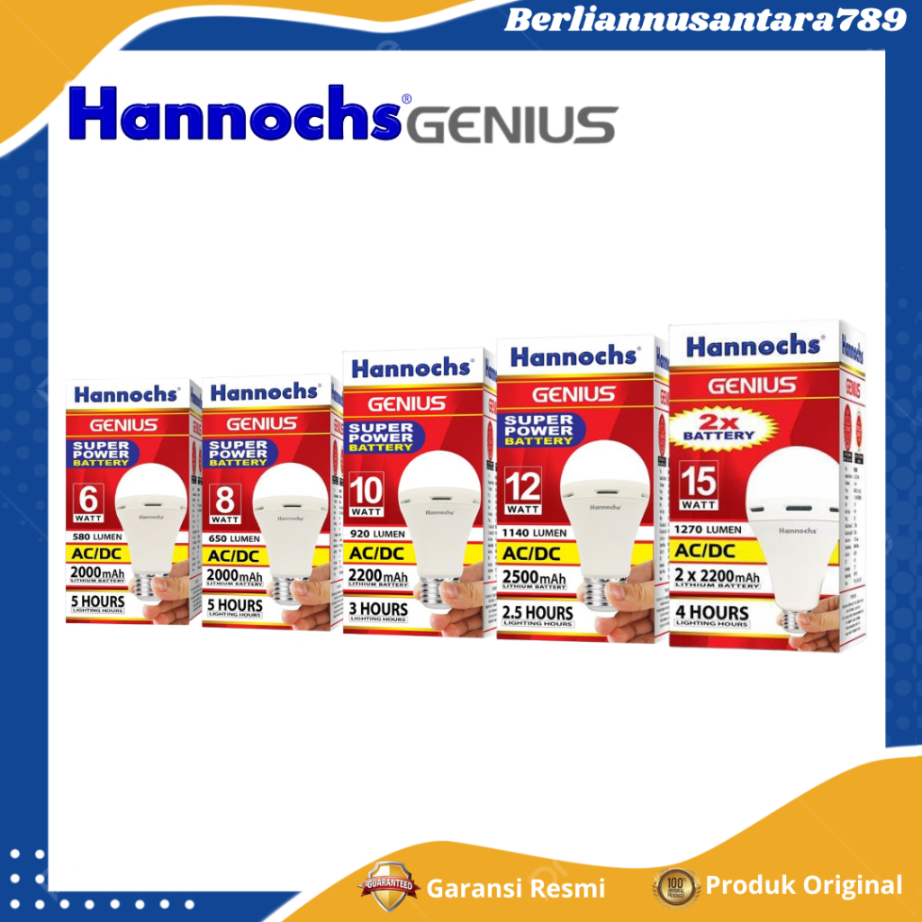 Hannochs Bohlam Lampu Emergency LED Genius 15WATT Cahaya Putih Cool Daylight - GARANSI RESMI