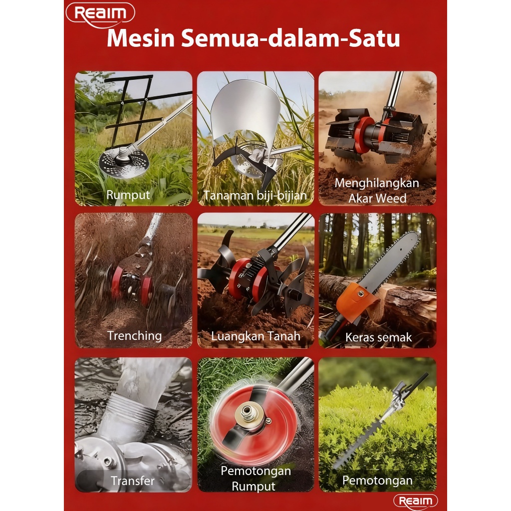 REAIM 6500W Mesin Potong Rumput 2/4Tak Arit Rumput Mesin Rumput Alat Pencabut RumputAlatPotongRumput