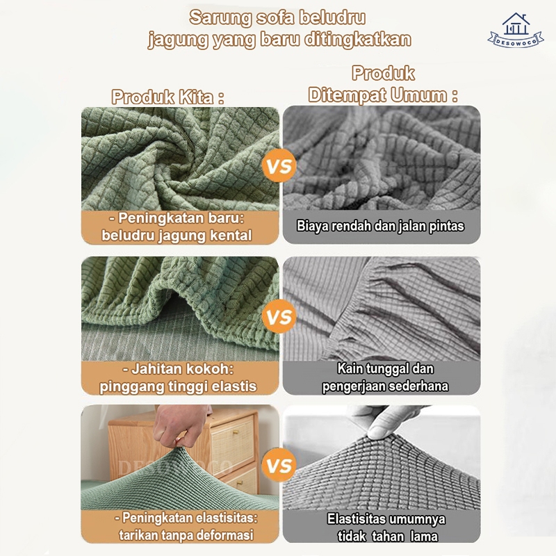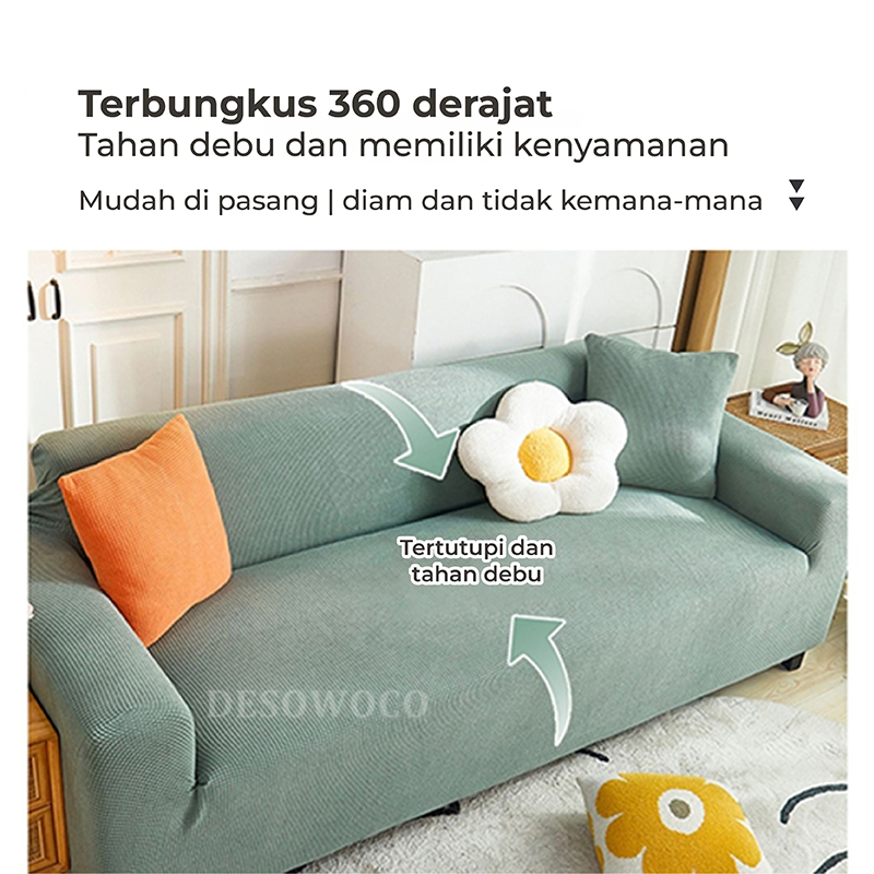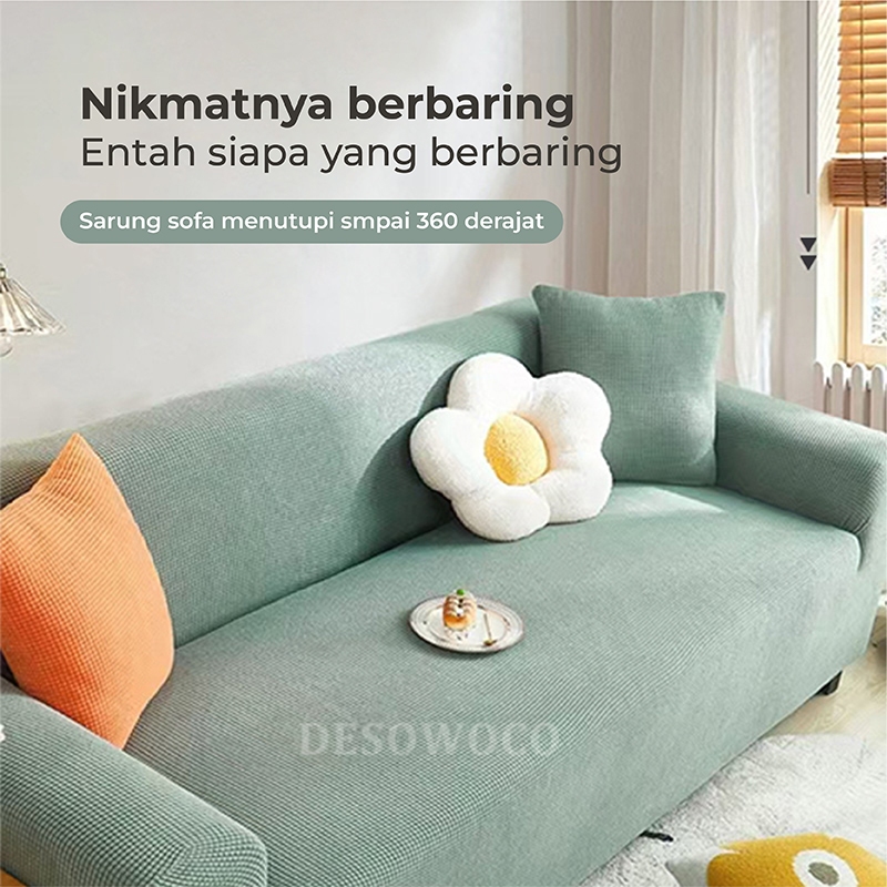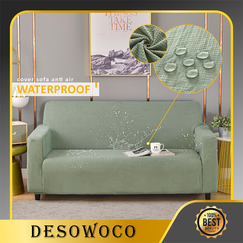 DESOWOCO Waterproof Warna Solid Sarung Sofa Cover sofa Tahan Air Sofa Cover Sofa Cover Elastis Pola Pola Menarik/Non-Sli