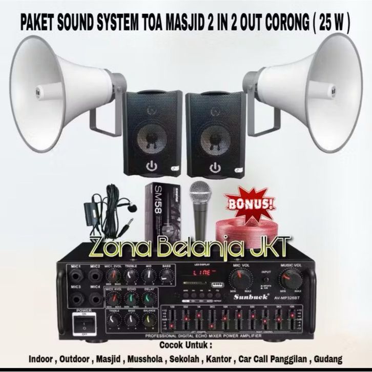PAKET SOUND TOA MASJID MUSHOLLA 2 IN 2 OUT CORONG TOA 25W