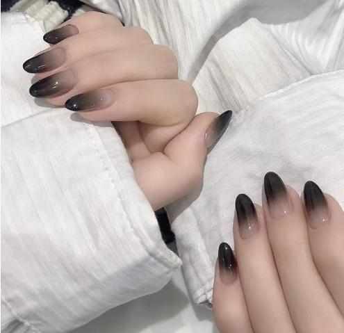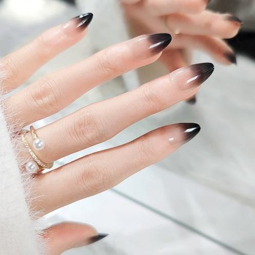 kuku palsu gradasi hitam lancip isi 24 pcs lengkap dengan dus dan lem