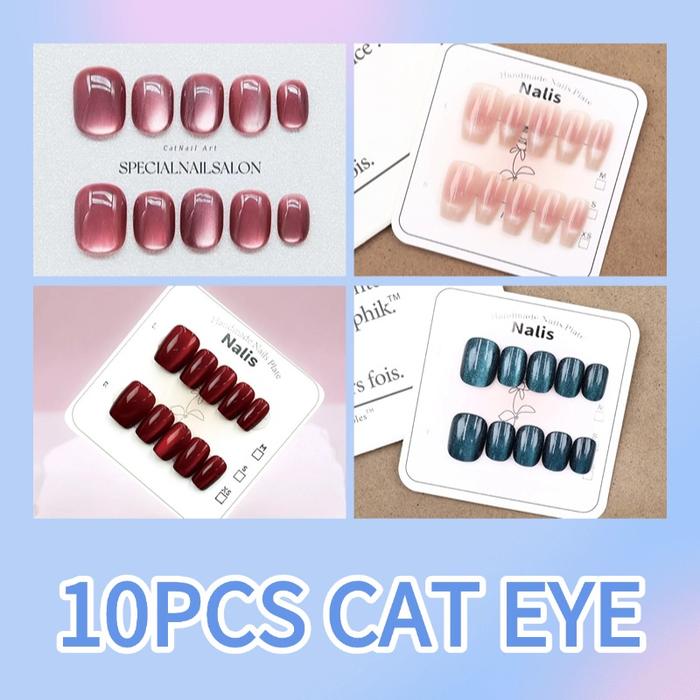 Kuku Palsu Nail Art Cat Eye Fake Nails Wisuda Aesthetic Lengkap Nikahan c06 10pcs/Set XS S M - FMD001 10PCS XS