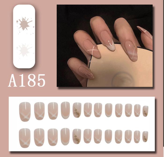 c06 Kuku Palsu nail art aesthetic dan lem wisuda 24pcs THE MINIMALIST LINES tangan cat Polish - A185