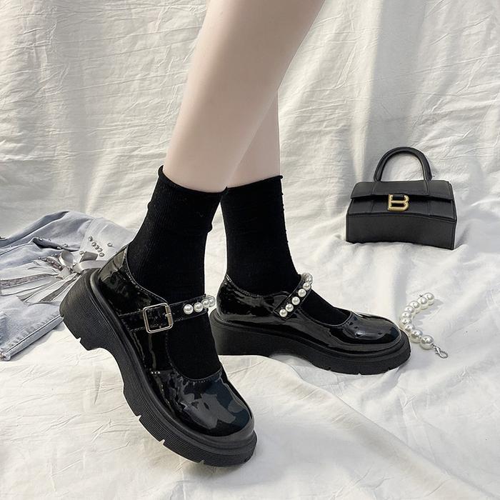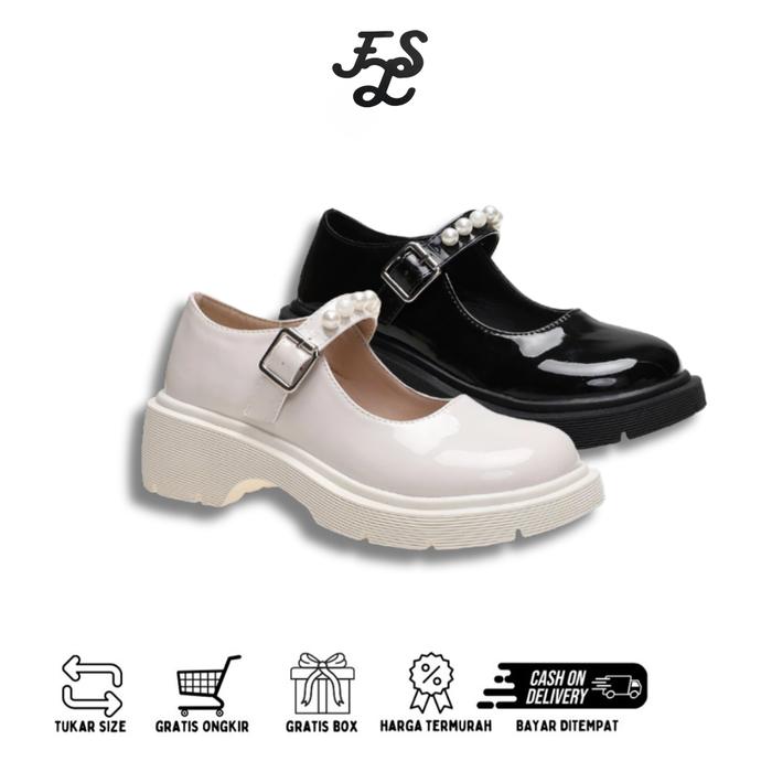 LUMMYSHOP Pearly Loafers Docmart Wanita Sepatu Kerja Formal Wanita Hitam Beige Premium Import - BEIGE 36