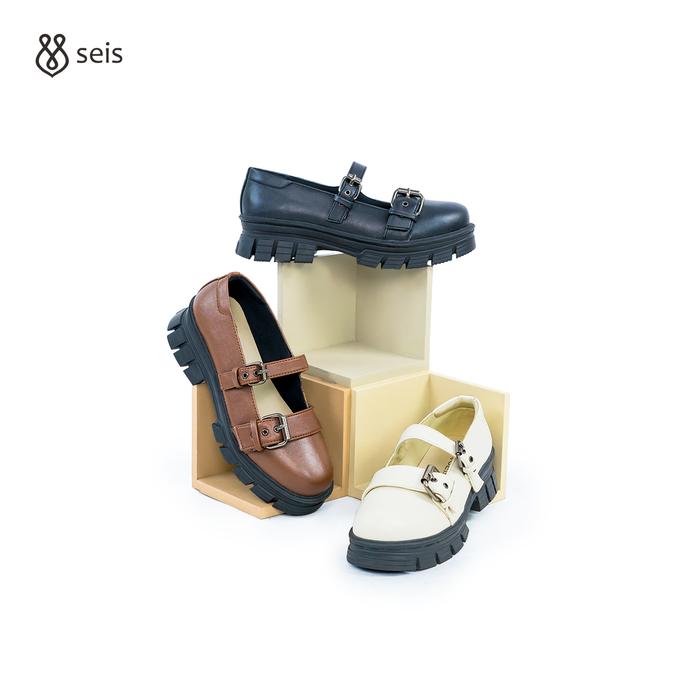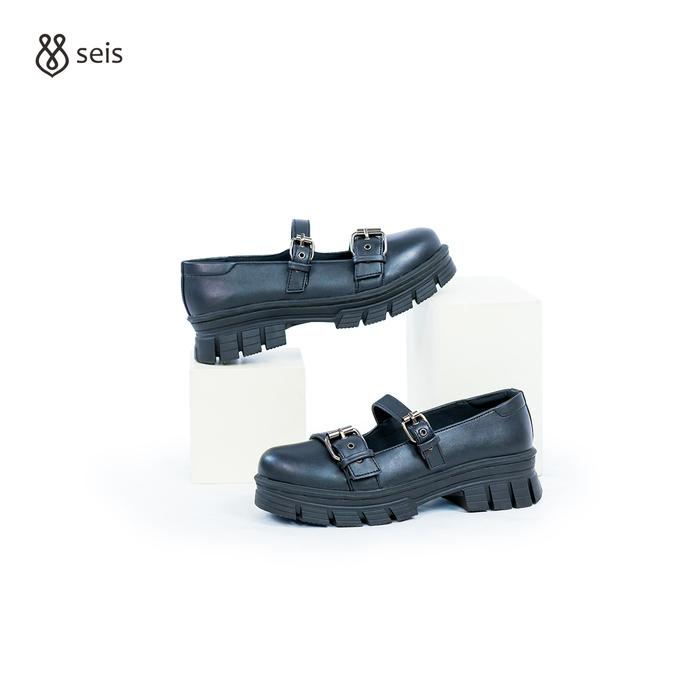 SEIS Retro Sepatu Docmart Wanita / Loafers Wanita - BLACK 36