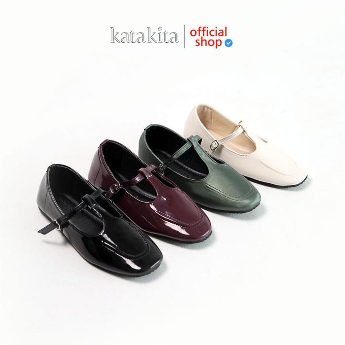 Katakita Loretta Mary Jane Flats Shoes Wanita Sepatu Hitam Balet Women Shoes - Black Glossy 37