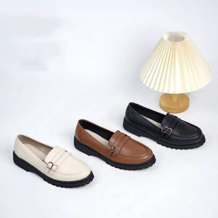 Sepatu Penny Loafers Wanita Kulit Hitam Terbaru Fashion Korea - hitam 37