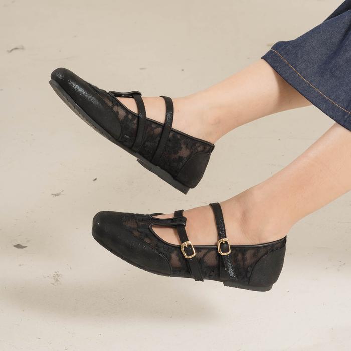 Dianable - Faye Flatshoes Sepatu Wanita (Black - Beige) | Sepatu Kerja - Black 36
