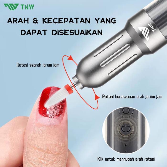 TNW PN8 Alat Kikir Kuku Elektrik Portable Nail Drill Polisher Wireless Nail Drill Manicure Grinder