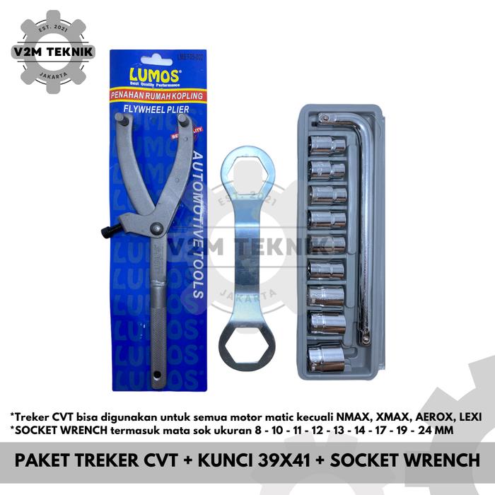 PAKET Treker CVT Universal + Kunci 39x41 MM + Mata Sok Set 9 Pcs + Gagang L / Tracker CVT Motor