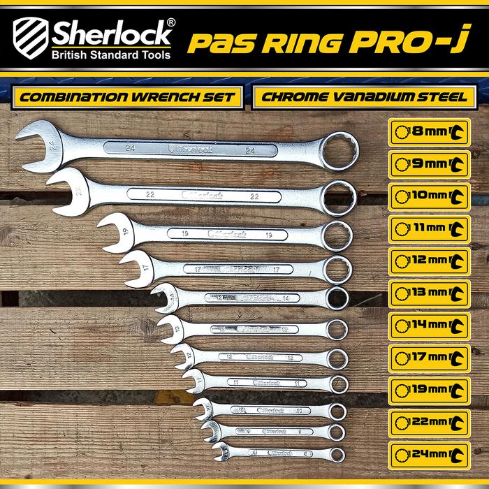 Kunci Set Lengkap Ring Pas Sherlock 11 pcs per set (size: 8 - 24 mm ) Pro-J series