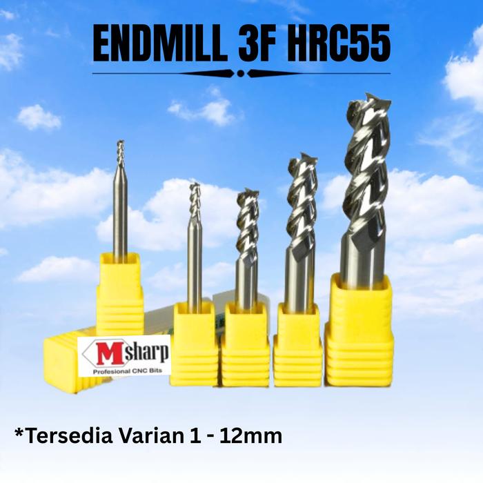 Endmill 3F untuk aluminium End Mill uncoating HRC55 Carbide 3 Flute 1mm-12mm