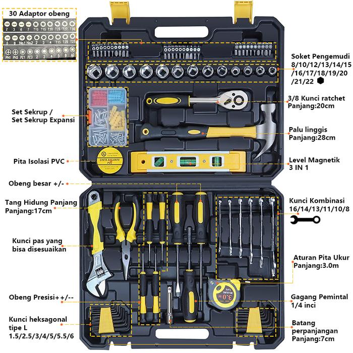 KEELAT 108 Pcs Set Kunci Sok Kunci Shock Toolbox Set Home Tool Mobil Motor Lengkap Socket Tool Kit