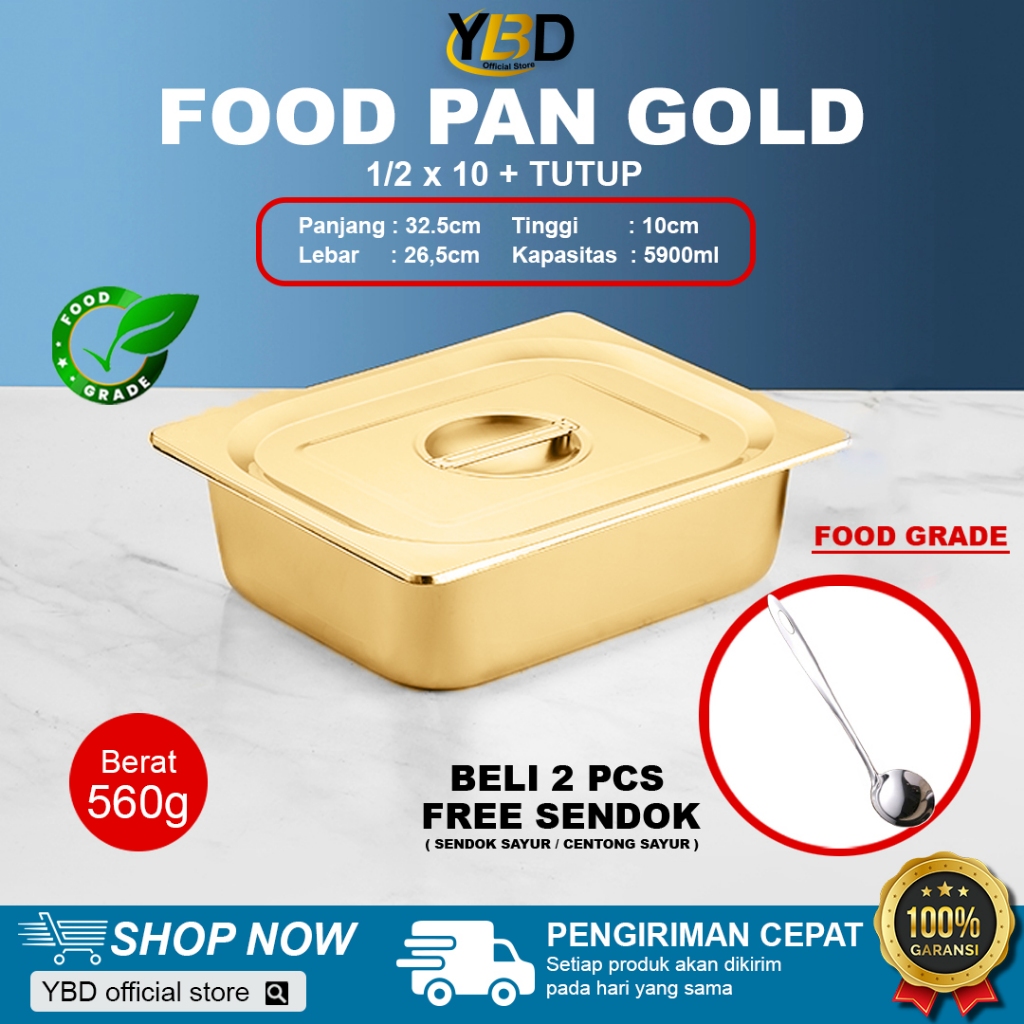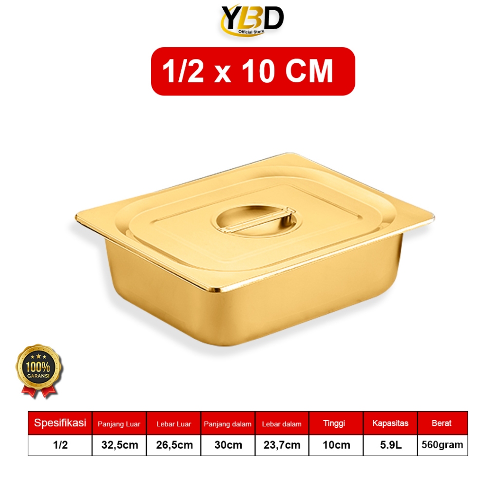 Food Pan + TUTUP Stainless 1/2 x 10 cm / Food pan wadah makanan stainless Steel / tempat makanan prasmanan Satu Set Tutup / wadah penggorengan anti karat / Food pan stainless Dengan Tutup