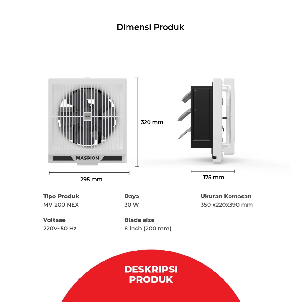 [BISA ] MASPION Exhaust Fan Dinding MV-200/250/300 NEX - 8/10/12 Inch Hexos Garansi Murah