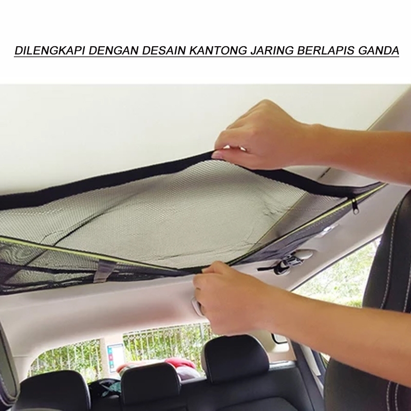 FLASH SALE Car Ceiling Organizer Net Tas Penyimpanan Mobil Gantung yang Dapat Disesuaikan Jaring Penyimpanan Atap Mobil Berlapis