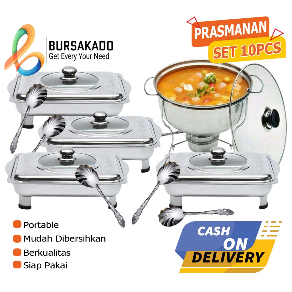 Paket Prasmanan Stainless Dan Warmer Stove Plus Sendok Paket Prasmanan Pesta Set 10pcs