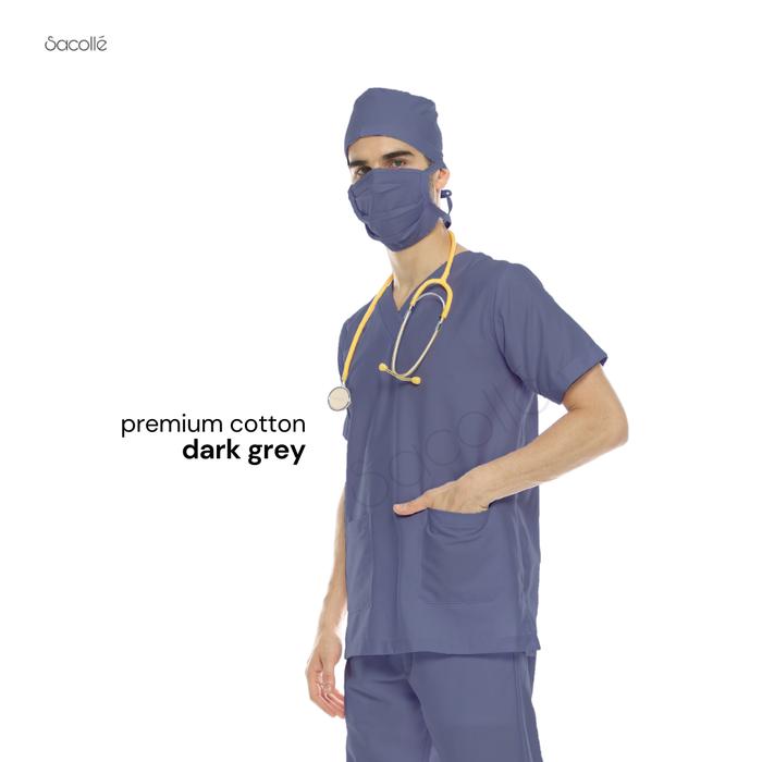READY BIG SIZE JUMBO LENGAN PENDEK BAJU OK BAJU JAGA BAJU SCRUB BAJU OKA SERAGAM MEDIS - DARK GREY, XXL