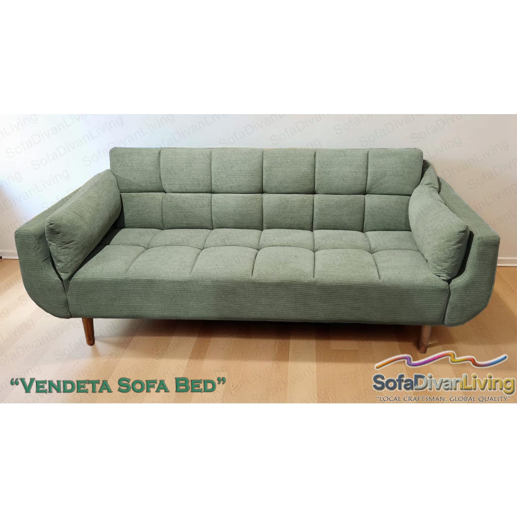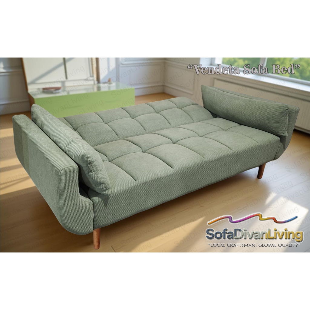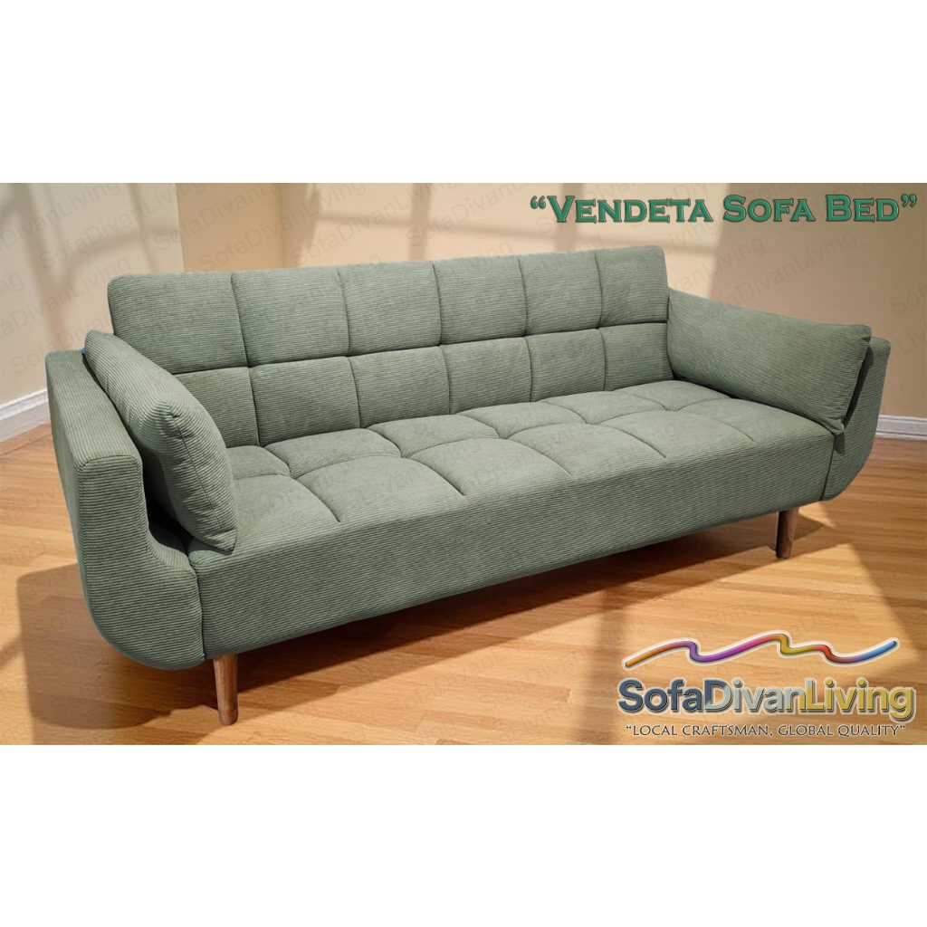 Sofa Bed Vendeta Minimalis 2 dan 3 Seater – Sofa Lipat Sofabed Multifungsi Kaki Retro Kain Corduroy