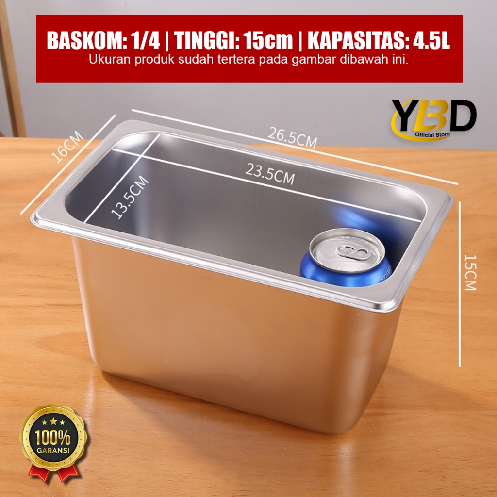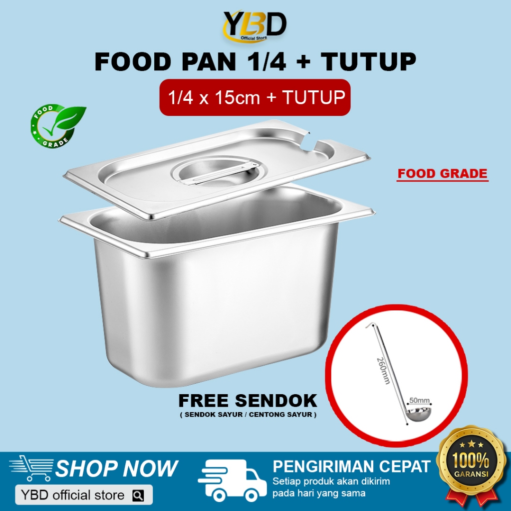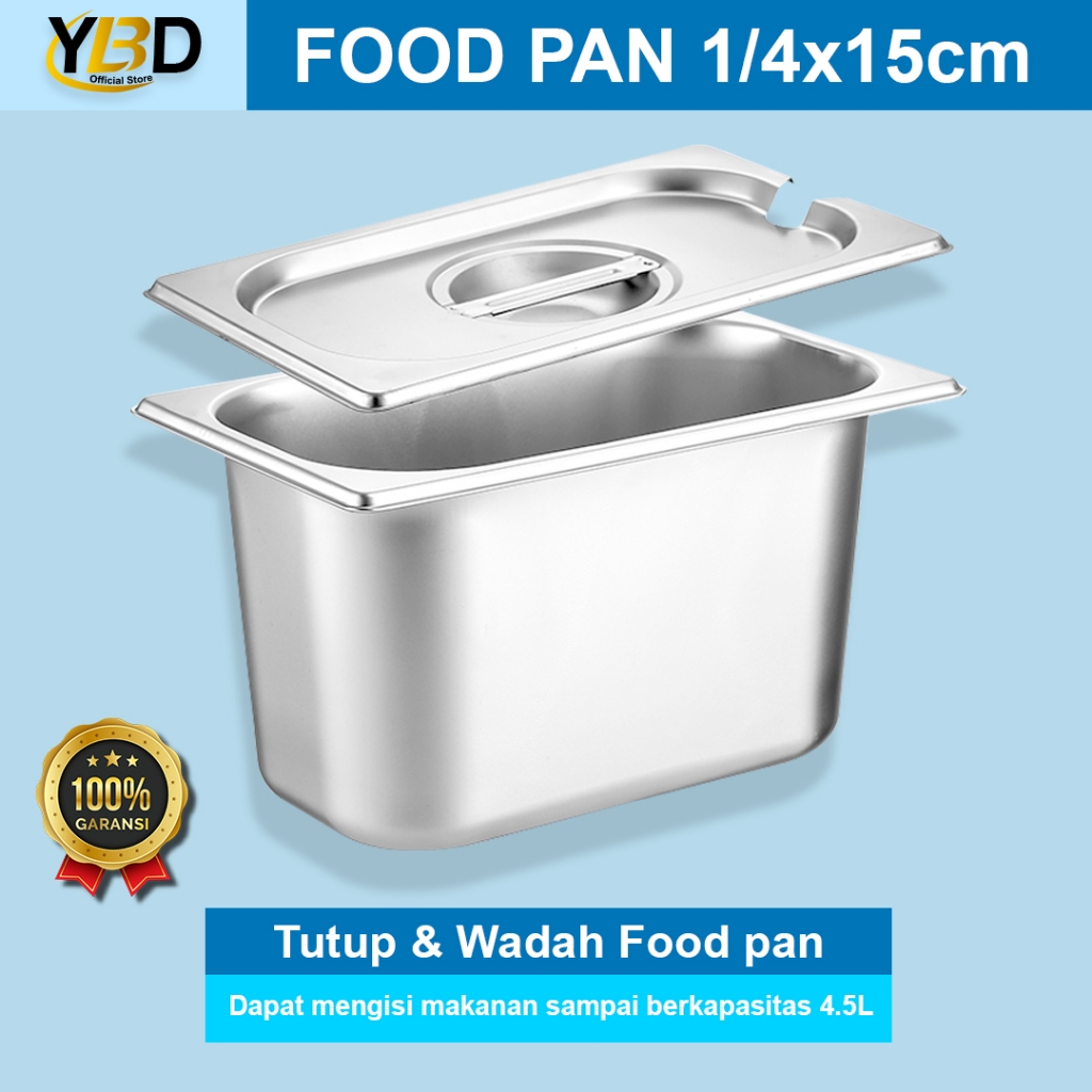 Food Pan Stainless + Tutup Lubang 1/4 x 15 cm (26,5 x 16,2 x 15cm) | Stainless Steel Gastronom Food Pan | Food pan prasmanan anti karat