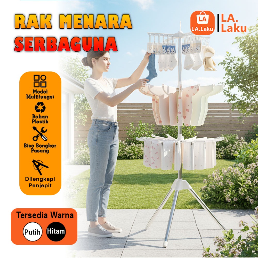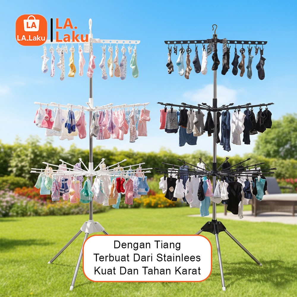 (LL) Jemuran Pakaian Bayi / Jemuran Menara 3 Susun /Gantungan Baju Pakaian Lipat Menara 10 jari jari
