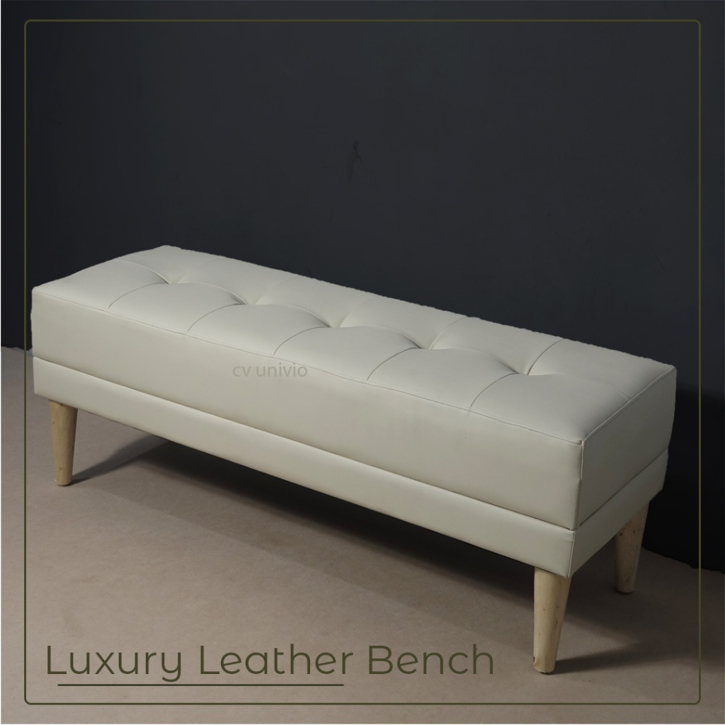 UNIVIO Stool Leather Tufted Bench Retro Kursi Sofa Kulit Sintetis Kaki Kayu