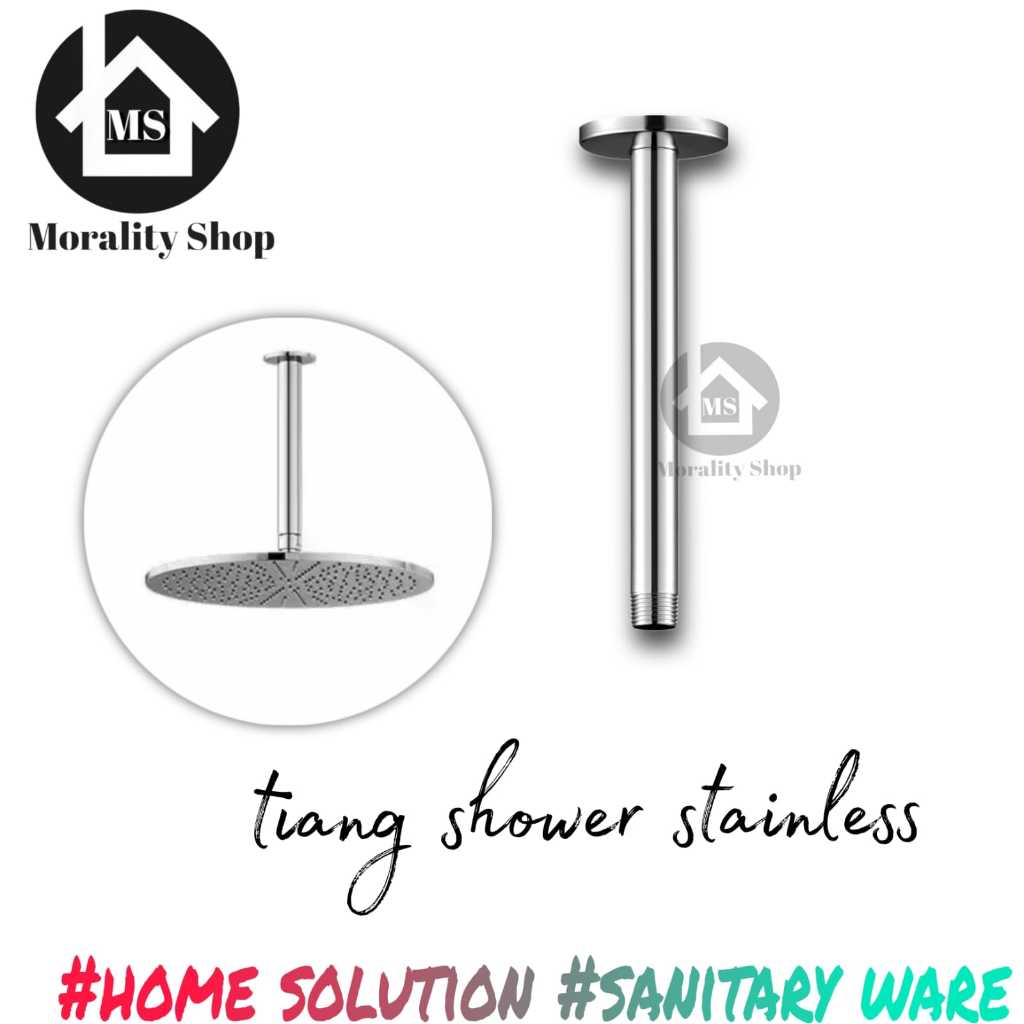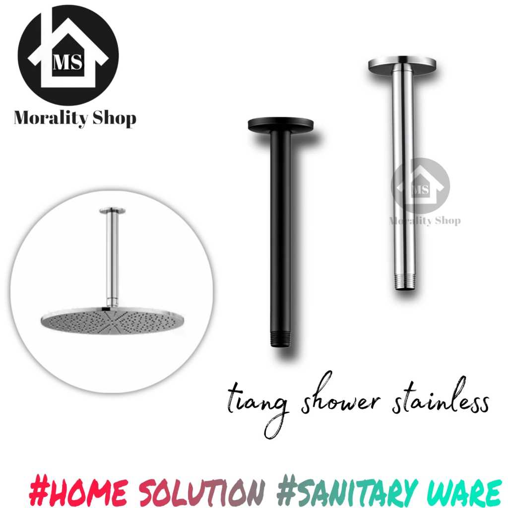 pipa tiang wall shower mandi stainless panjang 30cm / tiang shower tembok kamar mandi hitam 1/2 inch