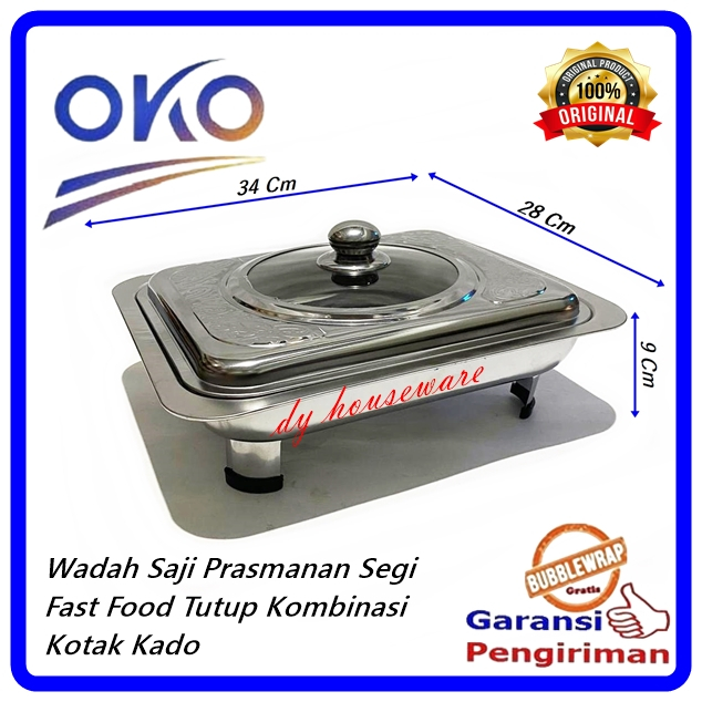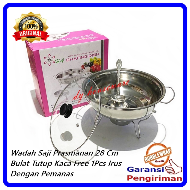 Prasmanan Wadah Saji Set 4 Segi 1 Bulat Stainless Tutup Kaca Kombinasi Free Centong Irus Stainless