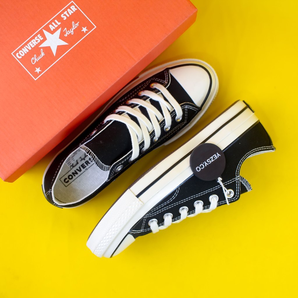 SNEAKERS CONVERSE 70S LOW BLACK WHITE EGRET AUTHENTIC ORIGINAL FREE PAPERBAG DAN KAOS KAKI UNISEX
