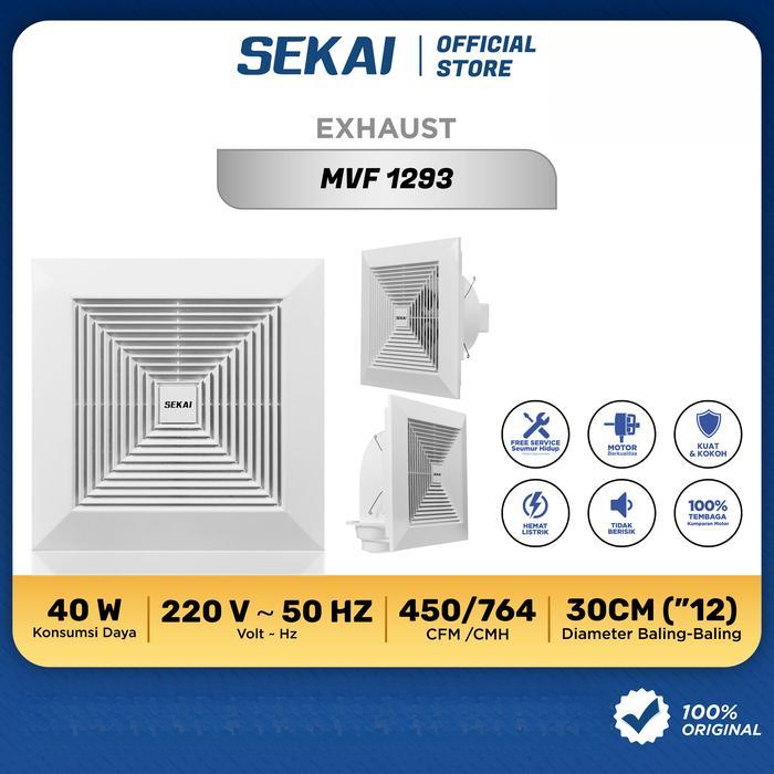 SEKAI Exhaust Fan / Kipas Angin Hexos Plafon Dak 8 inch / 10 inch - MVF 893 / MVF 1091