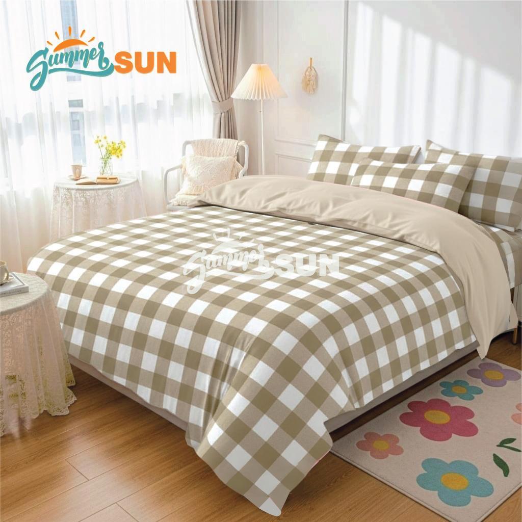 Bed Cover Set Gingham Khaki Mix Plain Khaki - Ukuran Lengkap - Summersun09