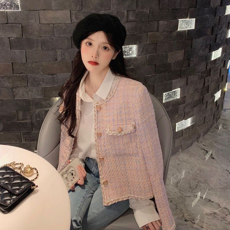 First Girl-Blazer Wanita Tweed Premium Korean Style Blazer Korea Pink - G017