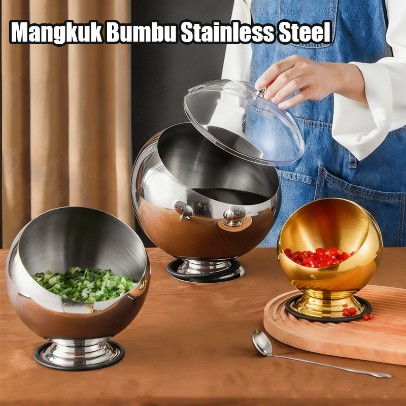 Prasmanan Bulat Mangkuk Prasmanan dengan Mangkuk Sup Tebal Dasar Mangkuk Prasmanan Korea Stainless Steel Tebal Stoples Bumbu Stainless Steel Mangkuk Bumbu Kecil Mangkuk